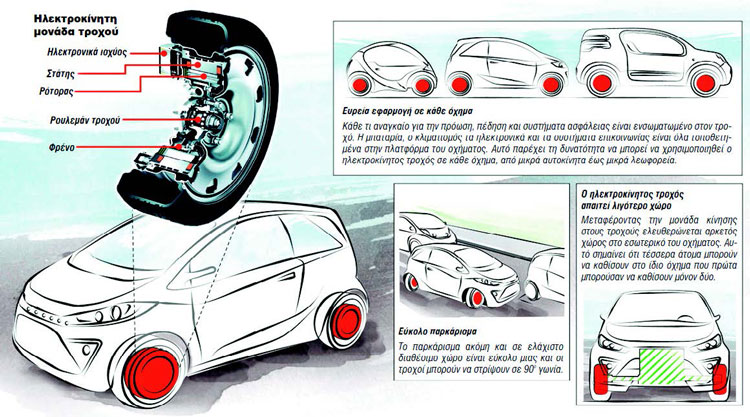 γ) Ηλεκτρικά συστήματα ενσωματωμένα στους τροχούς κίνησης του οχήματος
