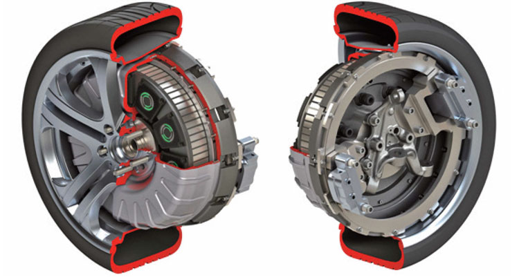 Τα ηλεκτρικά συστήματα αυτά είναι ενσωματωμένα στους τροχούς κίνησης του οχήματος και συνήθως αναφέρονται και σαν ηλεκτρικός τροχός. Στην συνέχεια παρουσιάζεται ο ηλεκτρικός τροχός της εταιρείας Schaeffler, ο οποίος αποτελεί και καινοτομία της εταιρείας.